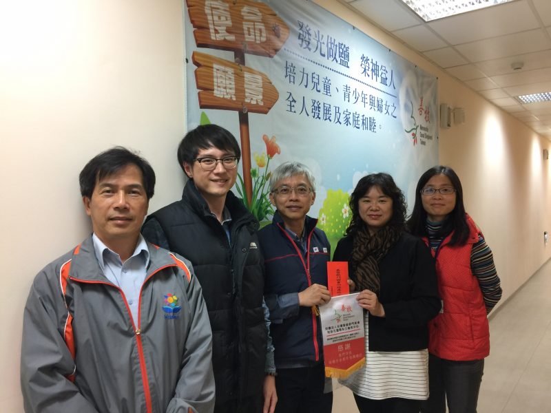 12/18(三)花蓮縣亞泥菩提慈善協會陳志賢理事長(亞泥花蓮廠副廠長)、陳祐廷理事及曾金龍總幹事等三人一同拜訪本中心並捐助善款。