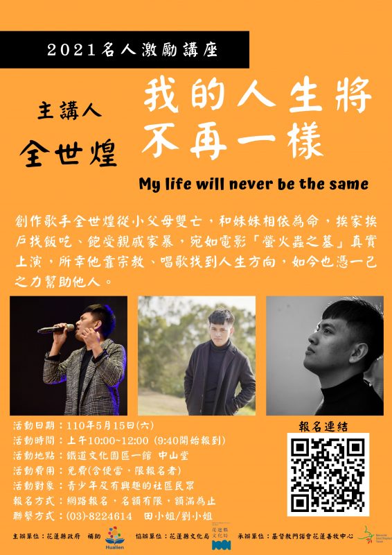 *更新:因應疫情警戒升級,原定於5/15(六)名人激勵講座延後舉辦,日期將配合中央流行疫情指揮中心公告另行通知,謝謝!